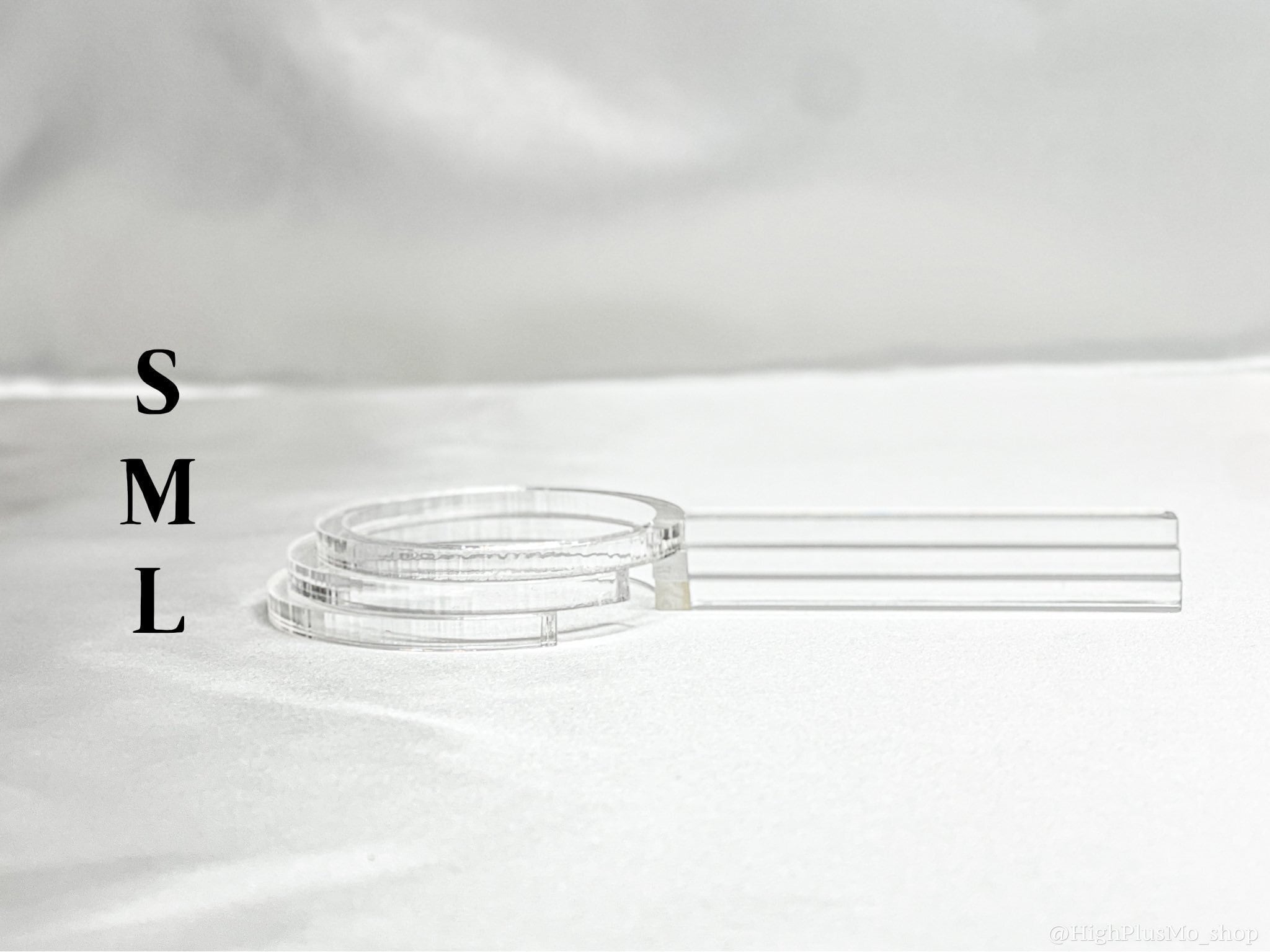 「なかよしこまど Mサイズ」にのみ、穴とピアスストッパーがついています。そして、補助具としてはさみストッパーもお付けしております。 Mサイズは真ん中サイズなので、「悩んで選んだものの少しゆるかった!」ということがあるかもしれないと思い、補助パーツをつけることにしました。