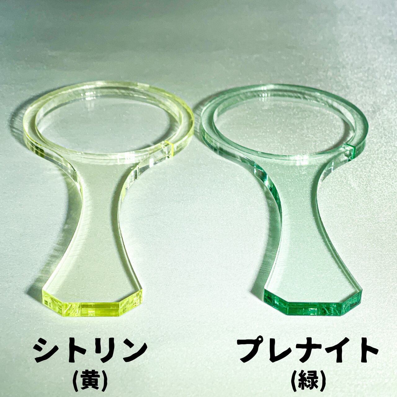 正面から見るとごく淡く色づいて見え、ふち側から見ると濃く輝いて見えます。
